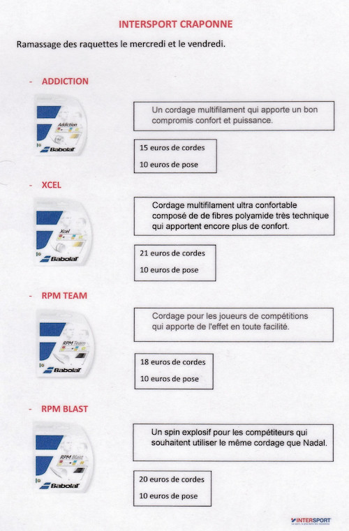Au retour de la raquette, avec sa facture, déposer votre règlement dans le placard (Chèque à l’ordre d’Intersport)