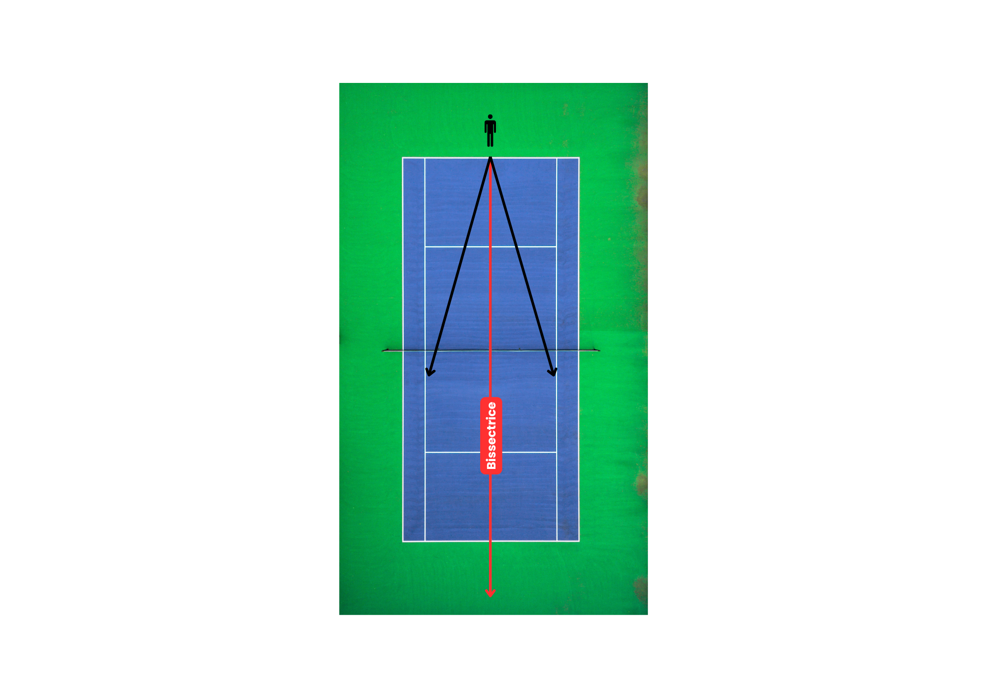 Imaginez que votre adversaire est un arroseur automatique. S’il peut tirer tout droit le long de la ligne ou croiser à mort, la bissectrice, c’est pile-poil entre les deux.